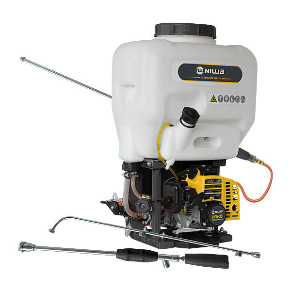 El pulverizador Niwa® PNW-33 es una poderosa máquina con una gran capacidad de litros en su depósito para químicos para hacer un gran trabajo en el cuidado de cultivos.